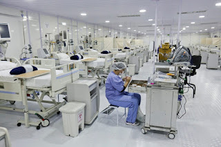 Segundo Raquel, o paciente com um risco menor vai para uma UCI; o que precisa de um suporte ventilatório, desde ventilação não invasiva até a necessidade de intubação, é encaminhado para um leito de suporte pulmonar ventilatório (LSPV), disponível nos hospitais de campanha. Se houver a necessidade de cirurgia ou algo mais específico, o paciente vai para os leitos de UTI tradicional.
