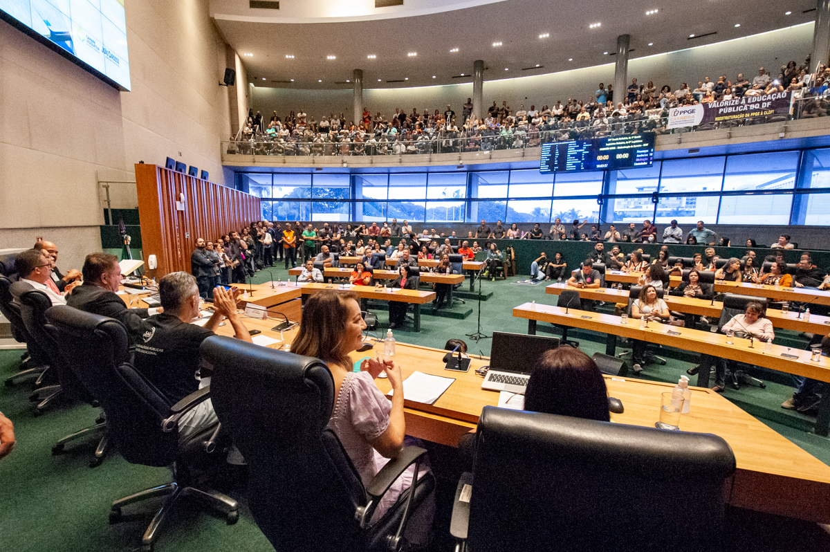 Servidores da Assistência à Educação do Distrito Federal lotaram o plenário da Câmara Legislativa, nesta quinta-feira (1º), para participa...