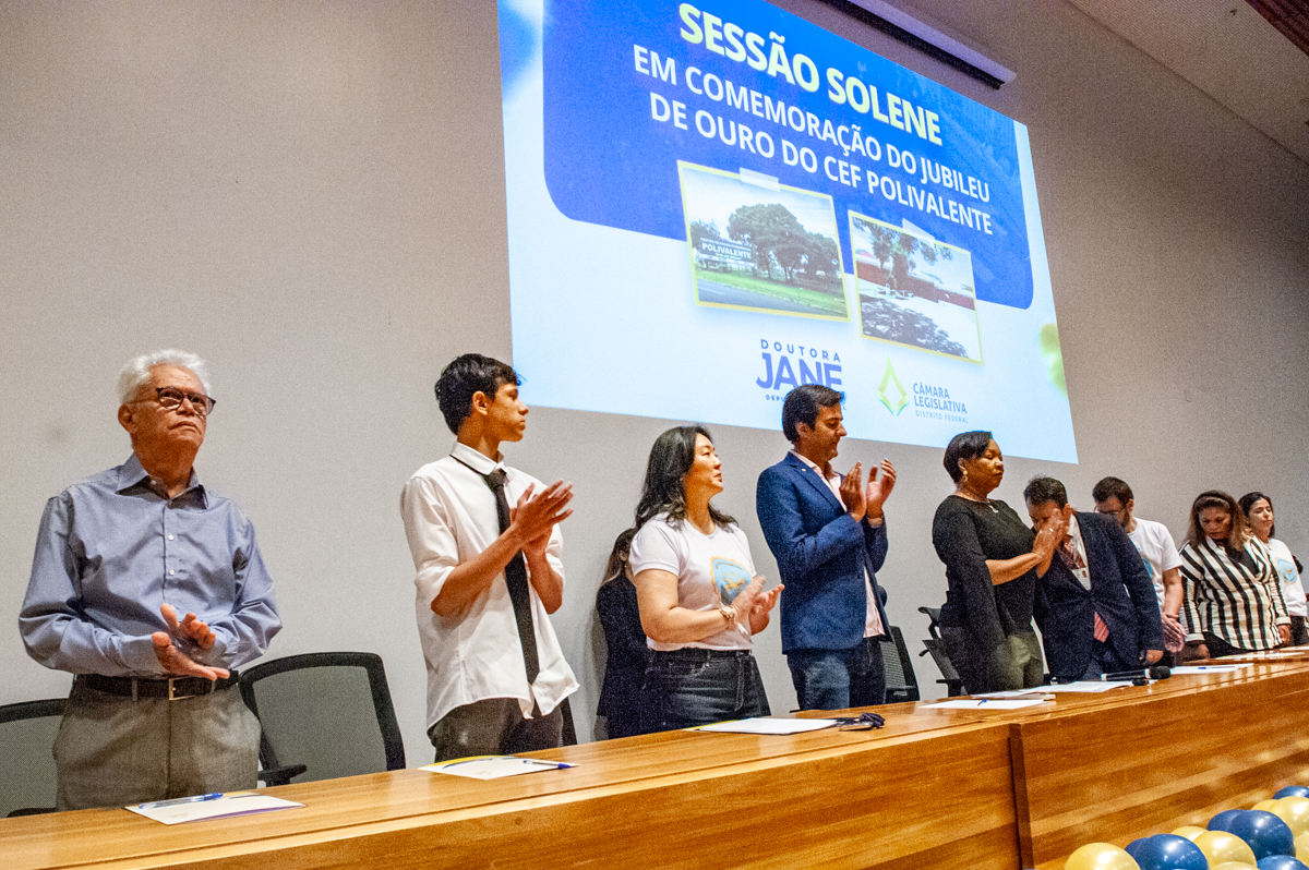 Na manhã desta quinta (18), a Câmara Legislativa do Distrito Federal celebrou os 50 anos de existência do Centro de Ensino Fundamental Polivalente (CEF Polivalente), instituição escolar localizada na quadra 913 Sul. Durante o evento, presidido pela deputada Doutora Jane (MDB), professores e alunos foram premiados com medalhas, menções honrosas e moções de louvor como gratificação e incentivo pelos esforços a favor da educação.